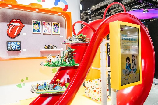 孩子们在“小小创变家”活动中的构思拼搭模型著作在乐高集团第五届进博会展台出现