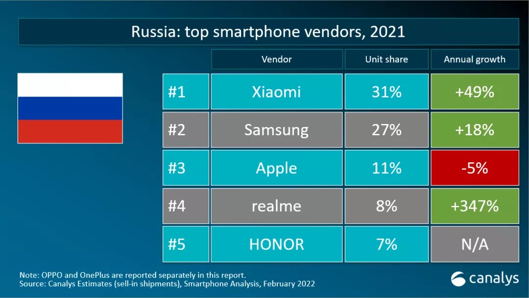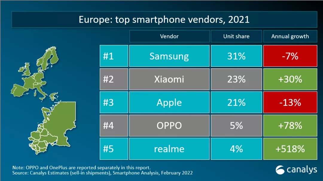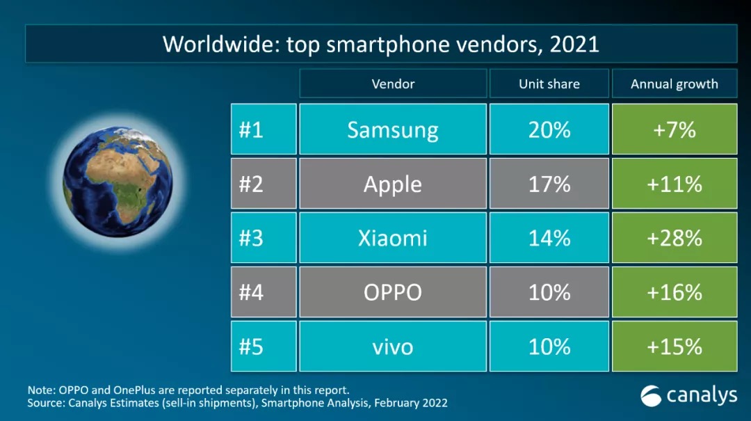 Canalys:2021 全年全球智能手机出货量达 13.5 亿部,同比增长 7%