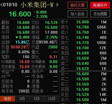 小米成功在香港上市:开盘价 16.6 港元,跌破发行价