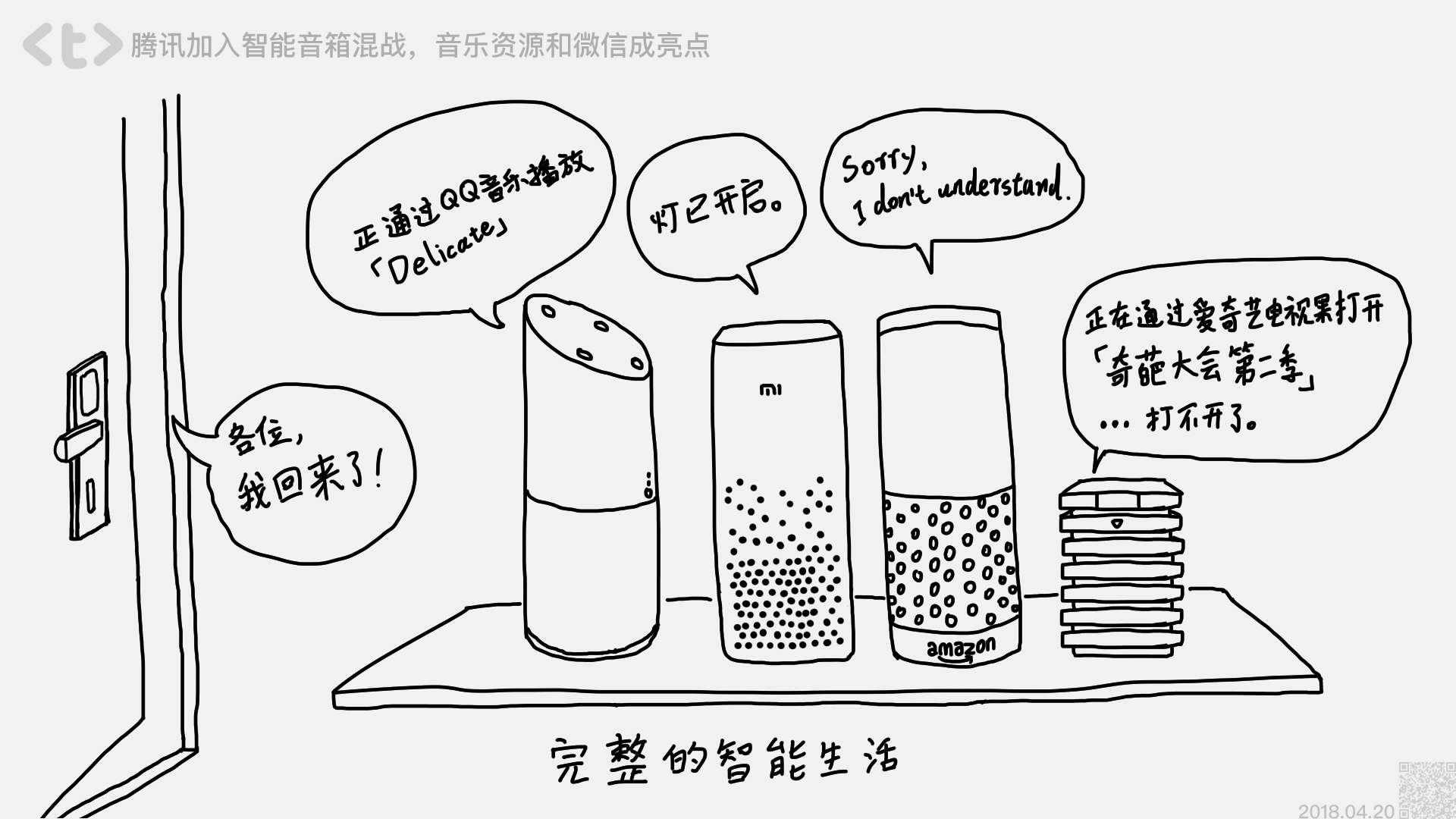 4 月 20 日,腾讯官方微信宣告腾讯首款智能音箱——以 9420 为唤醒词,主打家庭运用场景,以高品质音质、丰厚的内容资源、智能语音互动及可移动等特性满意家庭场景需求。