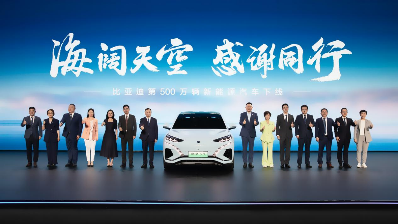 做时间的朋友,比亚迪第500万辆新能源车腾势N7下线